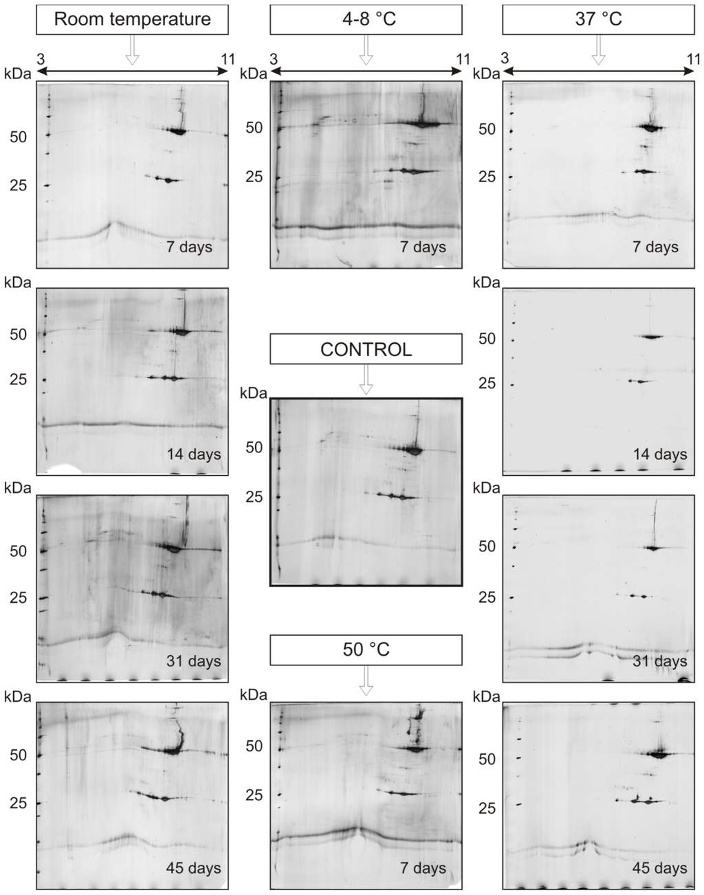 - Rabilloud, T.; Chevallet, M.; Luche, S.; Lelong, C. Two-dimensional gel electrophoresis in proteomics: Past, present and future. J. Proteomics 2010, 73, 2064–2077. [Google Scholar] [Green Version]