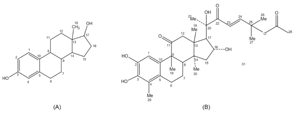 - Anstead, G.M.; Carlson, K.E.; Katzenellenbogen, J.A. The estradiol pharmacophore: Ligand structure-estrogen receptor binding affinity relationships and a model for the receptor binding site. Steroids 1997, 62, 268–303. [Google Scholar]