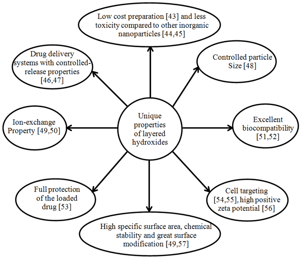 Recently, LDHs and zinc layered hydroxide have gained considerable attention due to their unique features (Figure 2) as nanocarriers in drug delivery systems.