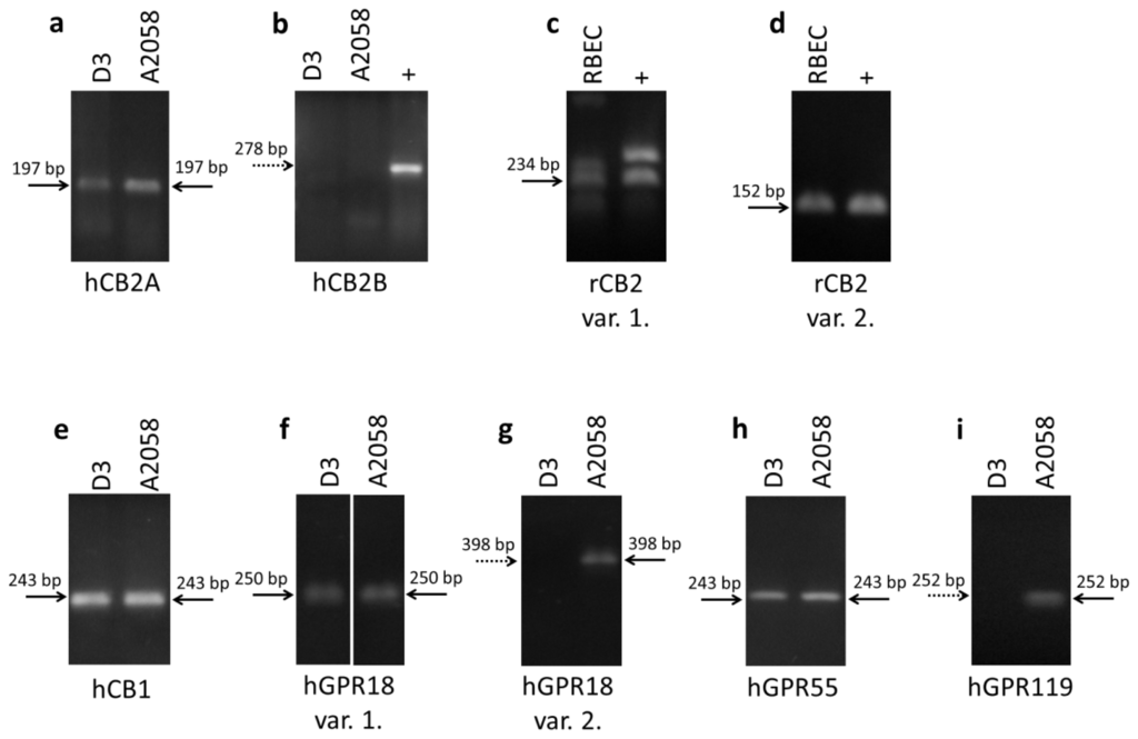 2.1. Expression of Cannabinoid Receptors and Cannabinoid-Like Receptors in Brain Endothelial Cells and Melanoma Cells