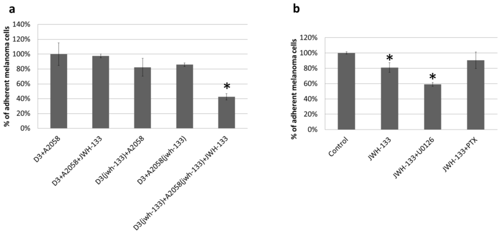 2.2. Effect of CB2 Activation on the Adhesion of Melanoma Cells to the Brain Endothelium
