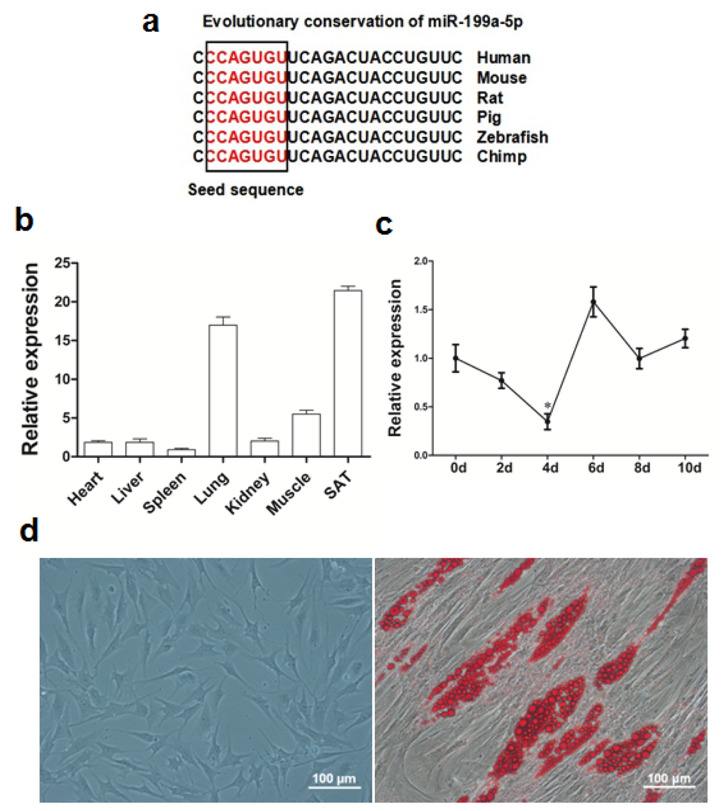 2.1.1. MiR-199a-5p Is Highly Expressed in SAT and Downregulated in Early Porcine Preadipocyte Differentiation