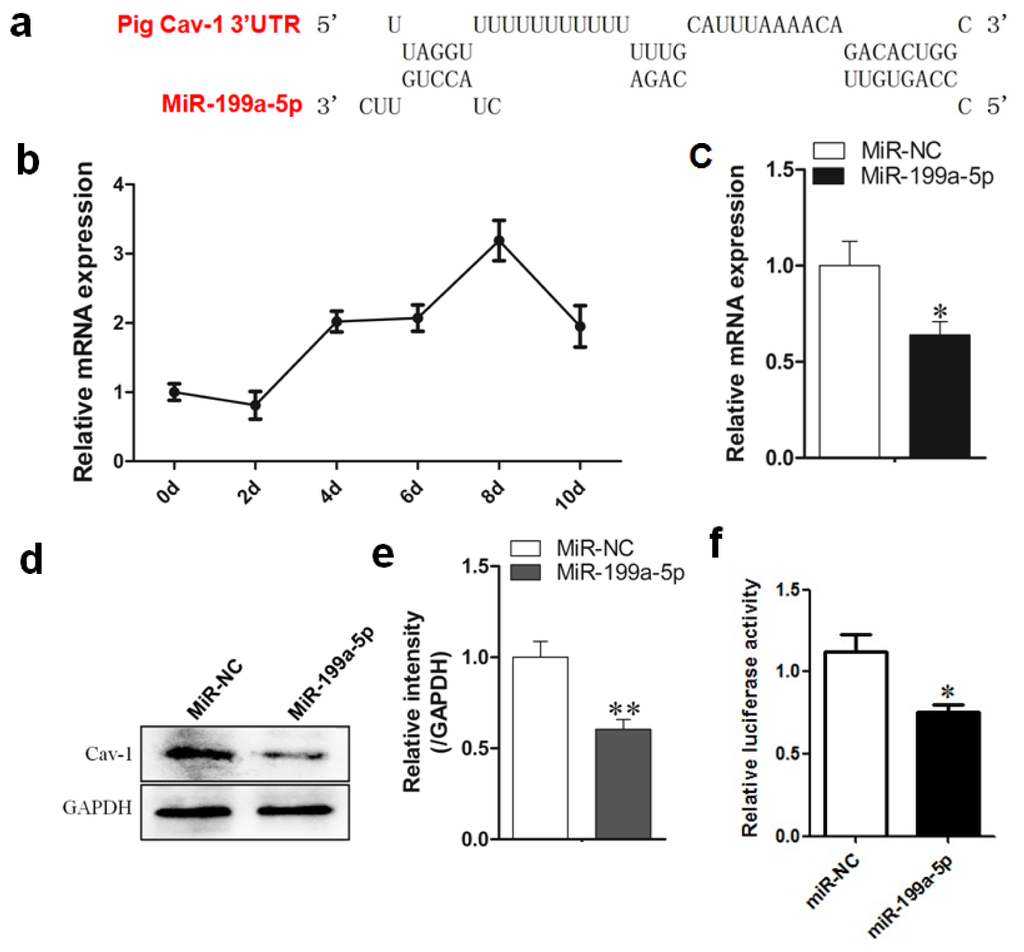 2.1.2. MiR-199a-5p Is Capable of Targeting Cav-1 in Porcine Fat Cells