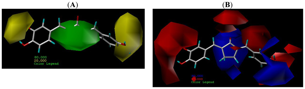 - Xu, G.; Chu, Y.; Jiang, N.; Yang, J.; Li, F. The three dimensional quantitative structure activity relationships (3d-qsar) and docking studies of curcumin derivatives as androgen receptor antagonists. Int. J. Mol. Sci 2012, 13, 6138–6155. [Google Scholar]