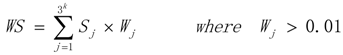 Based on the “common disease-common variant” hypothesis, we omit the genotype combinations with weights less than 0.01, and the weighted risk score is defined as follows: