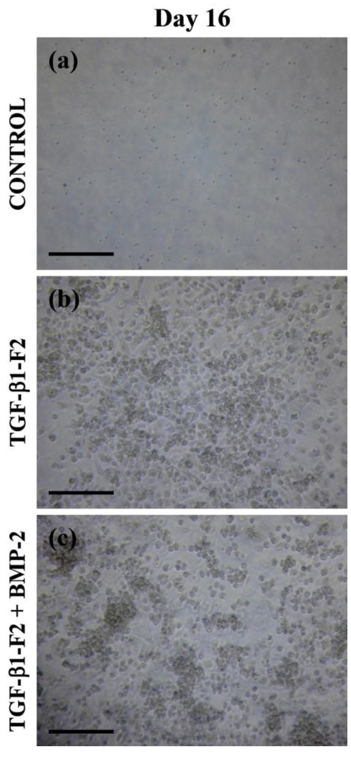 - Walsh, S.; Jefferiss, C.; Stewart, K.; Beresford, J.N. TGFbeta1 limits the expansion of the osteoprogenitor fraction in cultures of human bone marrow stromal cells. Cell Tissue Res. 2003, 311, 187–198. [Google Scholar]