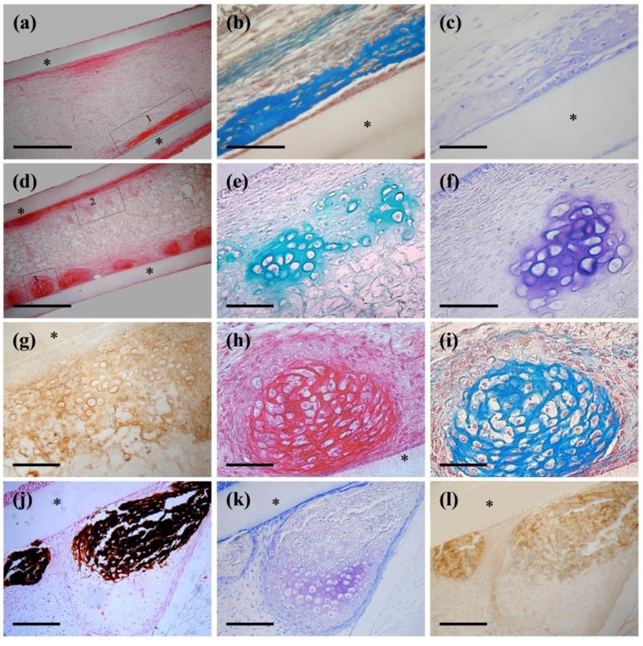 - Alonso, M.; Claros, S.; Becerra, J.; Andrades, J.A. The effect of type I collagen on osteochondrogenic differentiation in adipose-derived stromal cells in vivo. Cytotherapy 2008, 10, 597–610. [Google Scholar] [CrossRef]