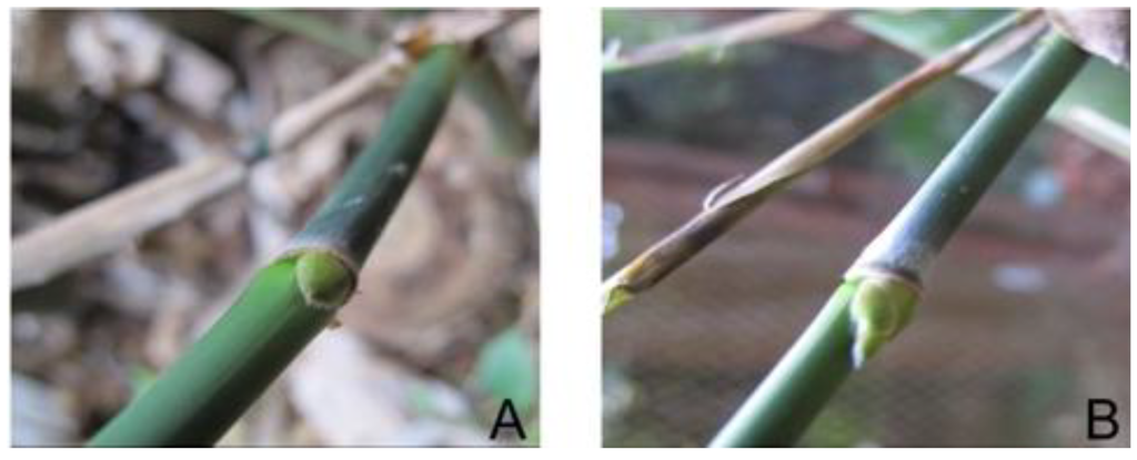 - John, C.; Nadgauda, R.S. Review in vitro-induced flowering in bamboos. In Vitro Cell. Dev. Biol. 1999, 35, 309–315. [Google Scholar] [CrossRef]