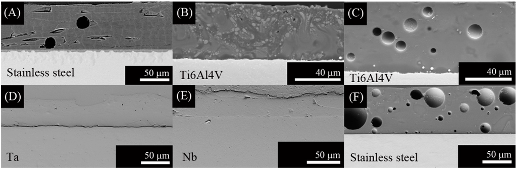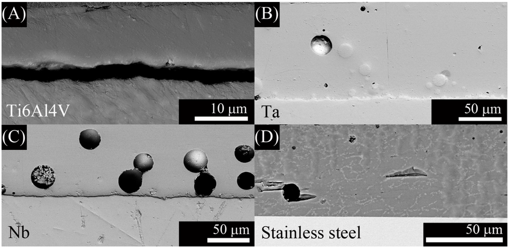 - Ti6Al4V, Ta, and Nb in argon atmosphere.