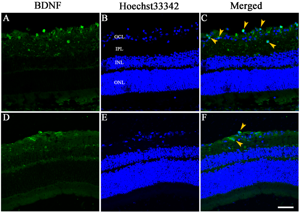 2.5. Immunohistochemical Staining of BDNF in the Retina
