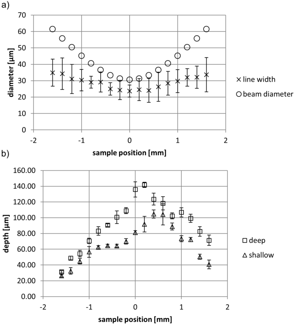 - Lehr, J.; Kietzig, A.-M. Production of homogenous micro-structures by femtosecond laser micro-machining. Opt. Lasers Eng. 2014, 57, 121–129. [Google Scholar] [CrossRef]