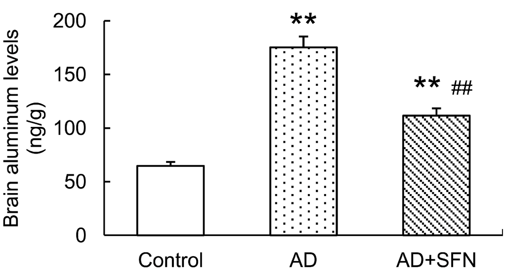 2.2. Analysis of Aluminum Level in the Mouse Brain