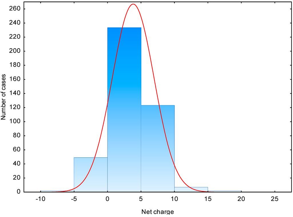 | Net charge | 3.7 | −7.0–20 | 0–5 (56) | 2.2 | −7.0–10.1 | −2–0 (34) |