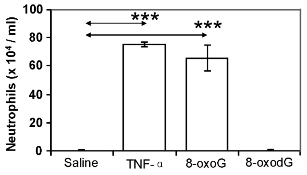 2.4.3. Pro-Inflammatory Gene Expression in the Lungs upon Challenge with 8-oxoG Base