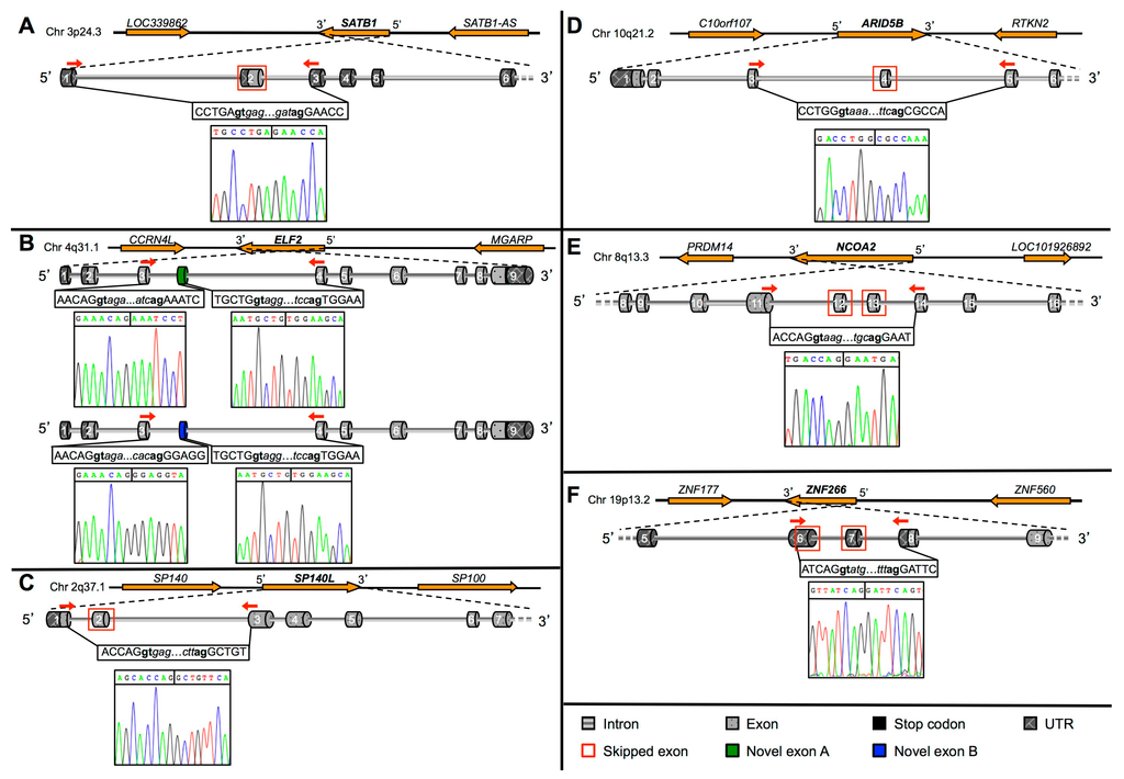| SP140L | 2q37.1 | KF419365/6/7 * | GGTGGGACGATGGCAGGT | CAAGTCCCTCATCTACATCC |
