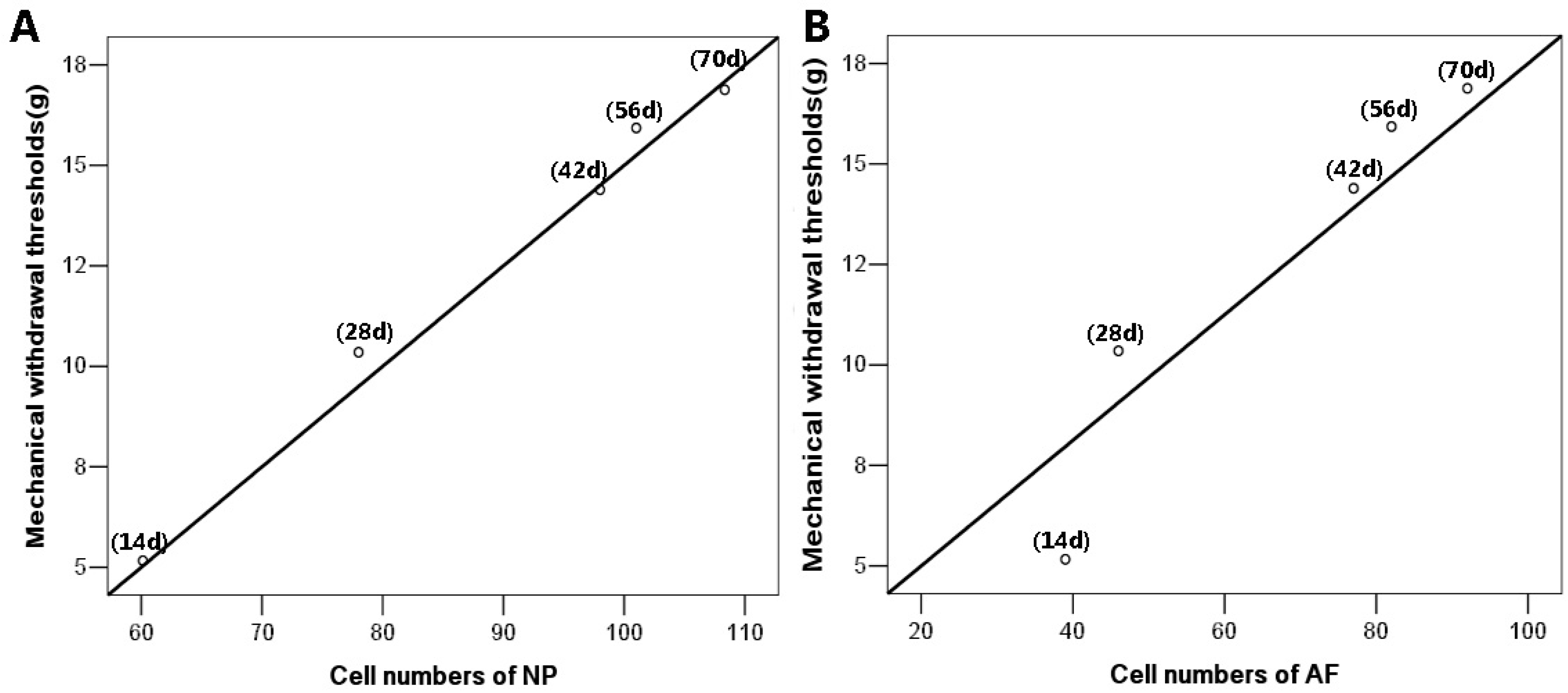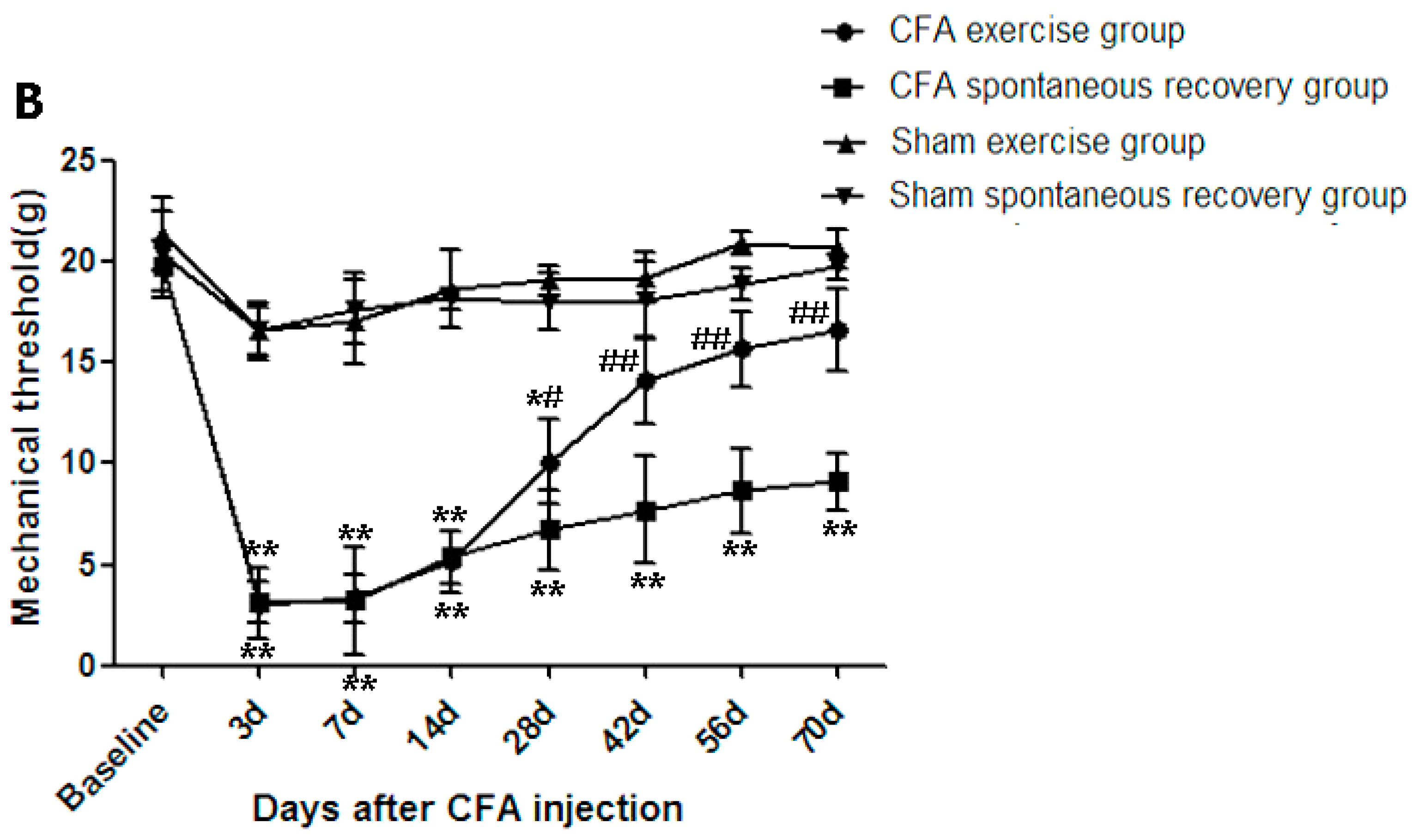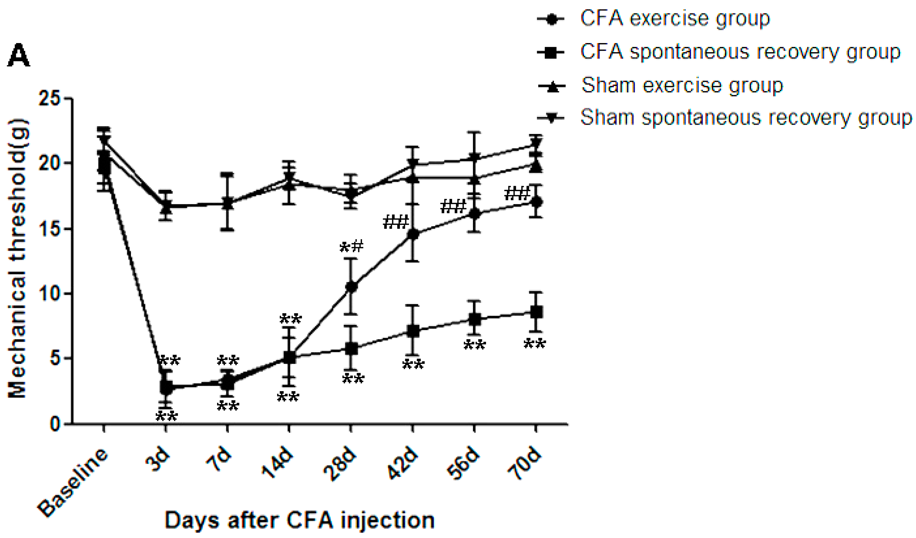 2.1. Running Exercise Attenuated Intradiscal Complete Freund’s Adjuvant (CFA)-Induced Mechanical Allodynia
