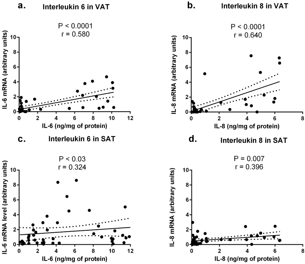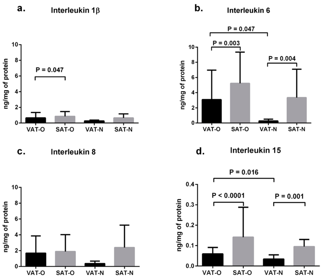 2.3. Cytokine Concentrations in Sera from Obese and Normal-Weight Individuals and Their Correlation with Protein Levels in Adipose Tissues