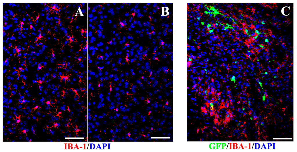 2.6. Inhibition of Microglia and Proinflammatory Cytokines after Transplantation