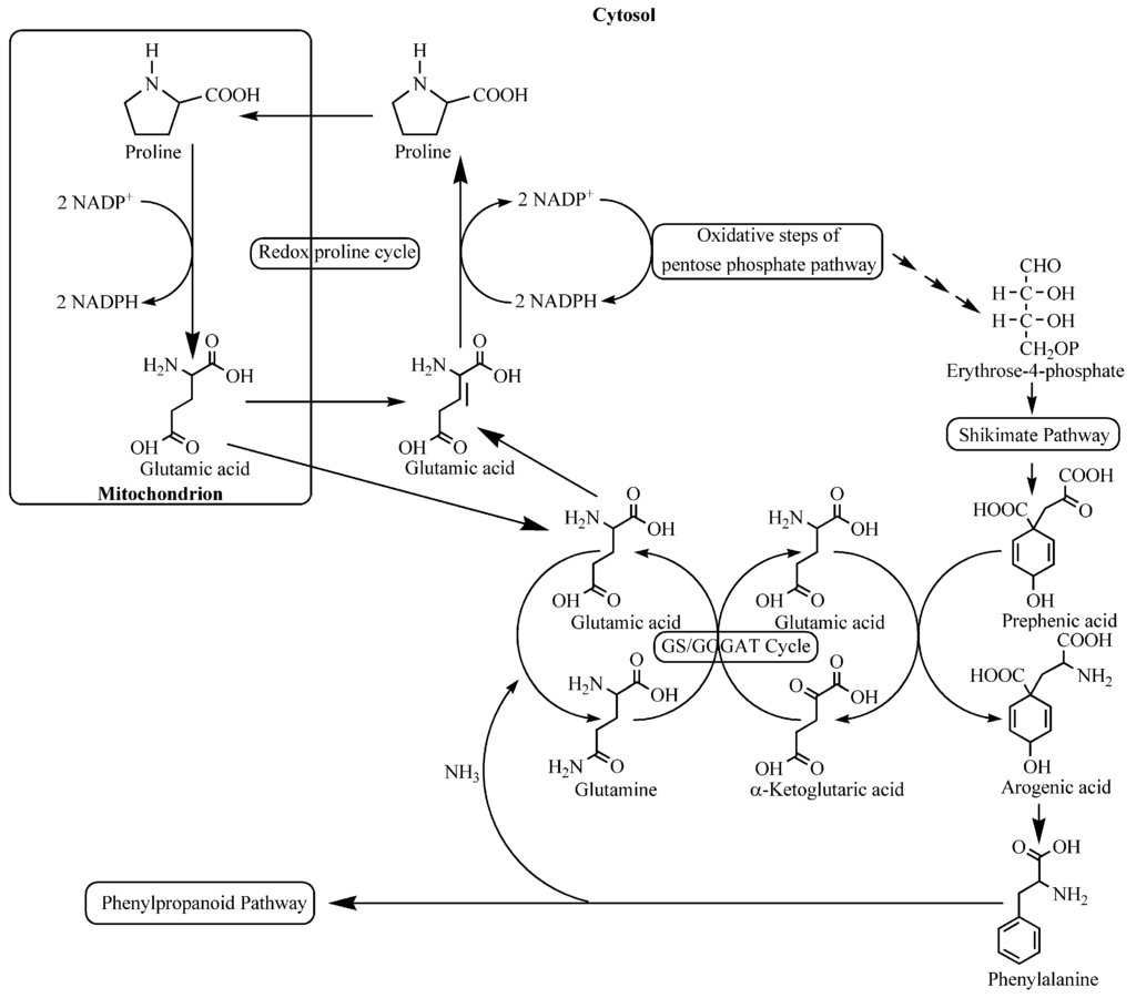 - Shetty, K. Role of proline-linked pentose phosphate pathway in biosynthesis of plant phenolics for functional food and environmental applications: A review. Proc. Biochem. 2004, 9, 789–803. [Google Scholar] [CrossRef]