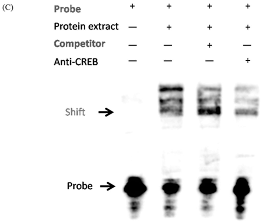 - Ofir, R.; Dwarki, V.J.; Rashid, D.; Verma, I.M. CREB represses transcription of fos promoter: Role of phosphorylation. Gene Expr. 1991, 1, 55–60. [Google Scholar] [PubMed]
