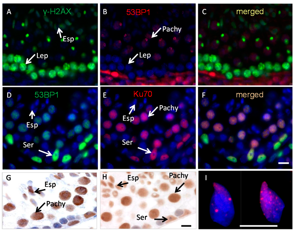 2.1. Ku70 and 53BP1 Are Not Expressed in Elongated Spermatids
