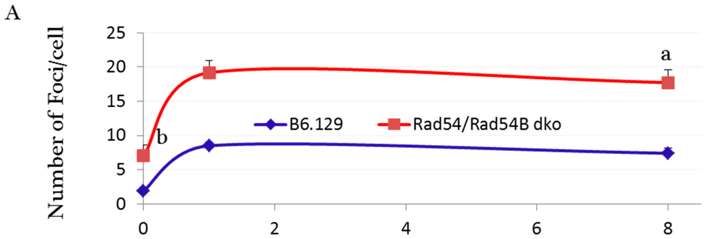 - Wesoly, J.; Agarwal, S.; Sigurdsson, S.; Bussen, W.; van Komen, S.; Qin, J.; van Steeg, H.; van Benthem, J.; Wassenaar, E.; Baarends, W.M.; et al. Differential contributions of mammalian Rad54 paralogs to recombination, DNA damage repair, and meiosis. Mol. Cell. Biol. 2006, 26, 976–989. [Google Scholar] [CrossRef] [PubMed]