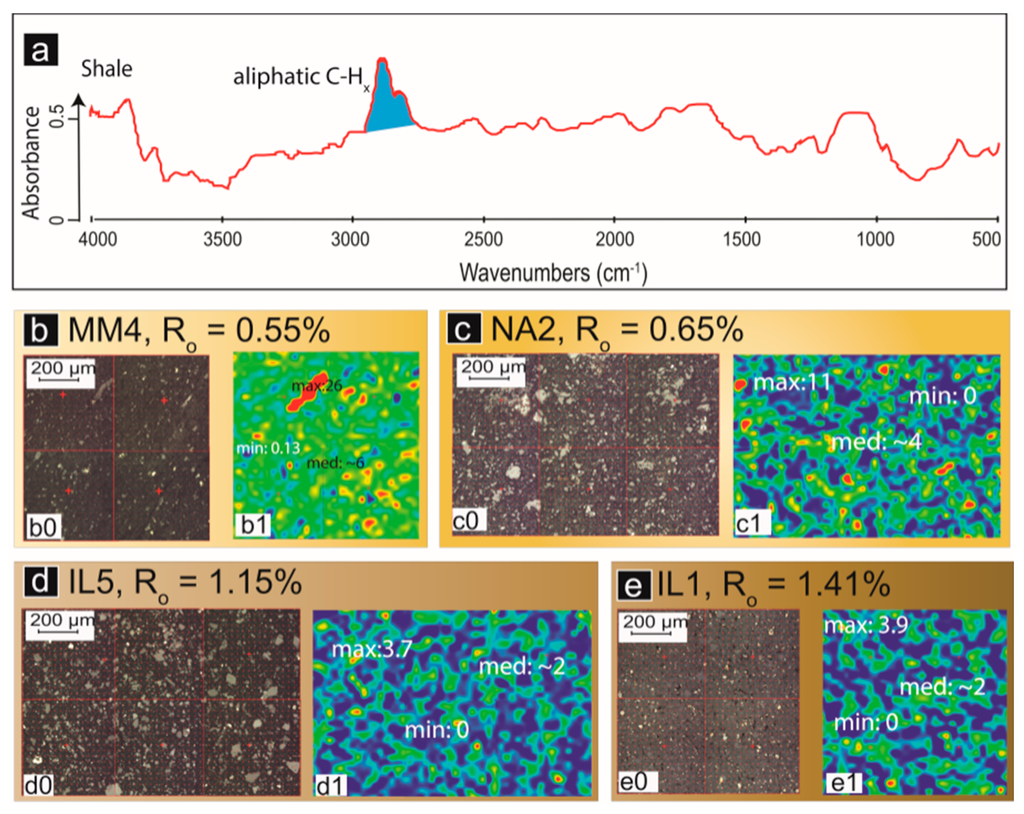 - Chen, Y.; Mastalerz, M.; Schimmelmann, A. Heterogeneity of shale documented by micro-FTIR and image analysis. J. Microsc. 2014. [Google Scholar] [CrossRef] [PubMed]