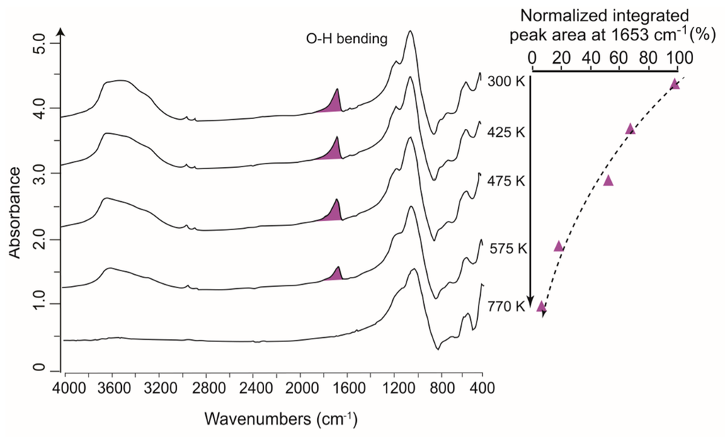 - Tokiwai, K.; Nakashima, S. Integral molar absorptivities of OH in muscovite at 20 to 650 °C by in situ high-temperature IR microspectroscopy. Am. Mineral. 2010, 95, 1052–1059. [Google Scholar] [CrossRef]