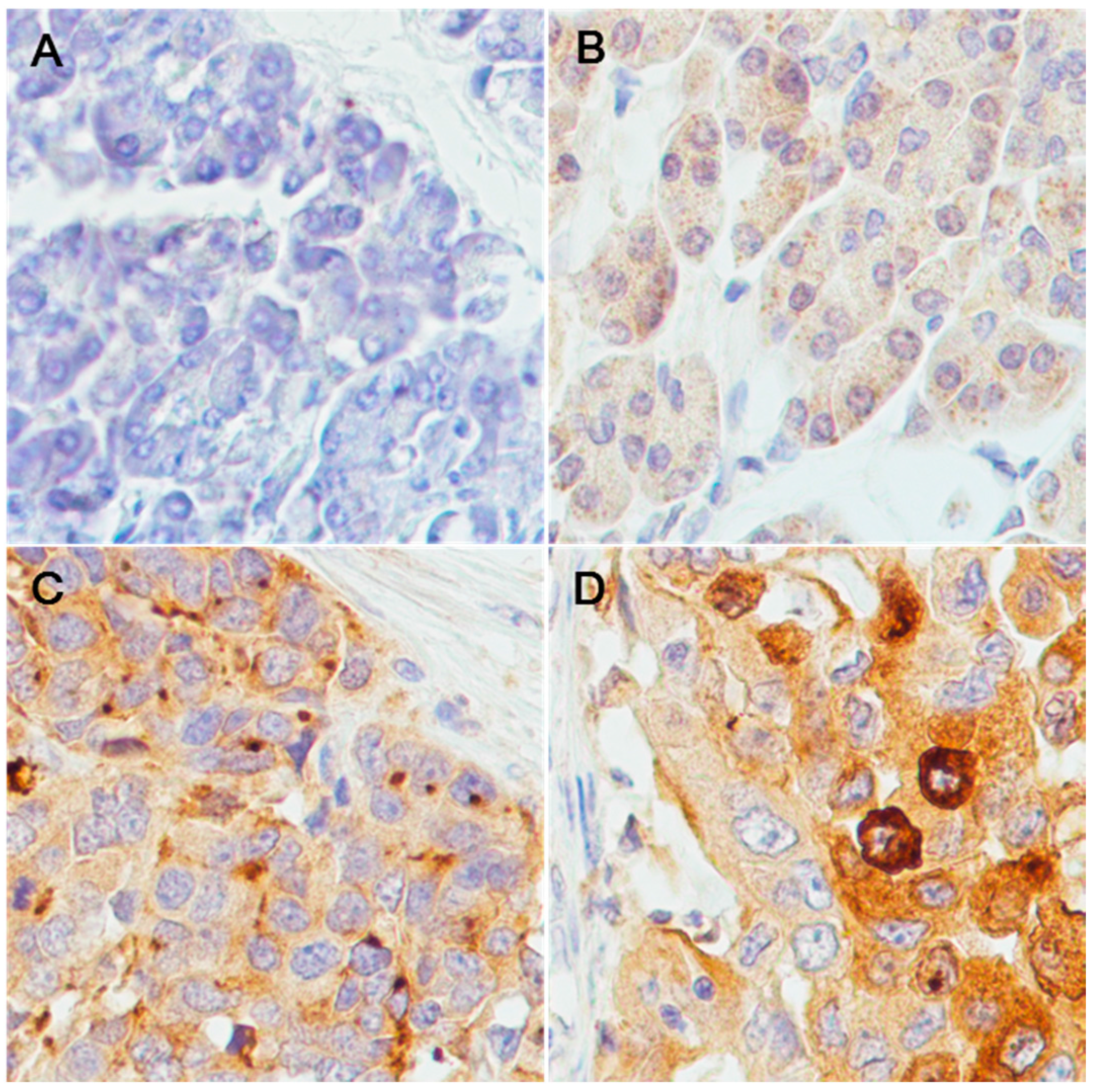 2.2. Over-Expression of HE4 Protein in Pancreatic Adenocarcinoma Tissues