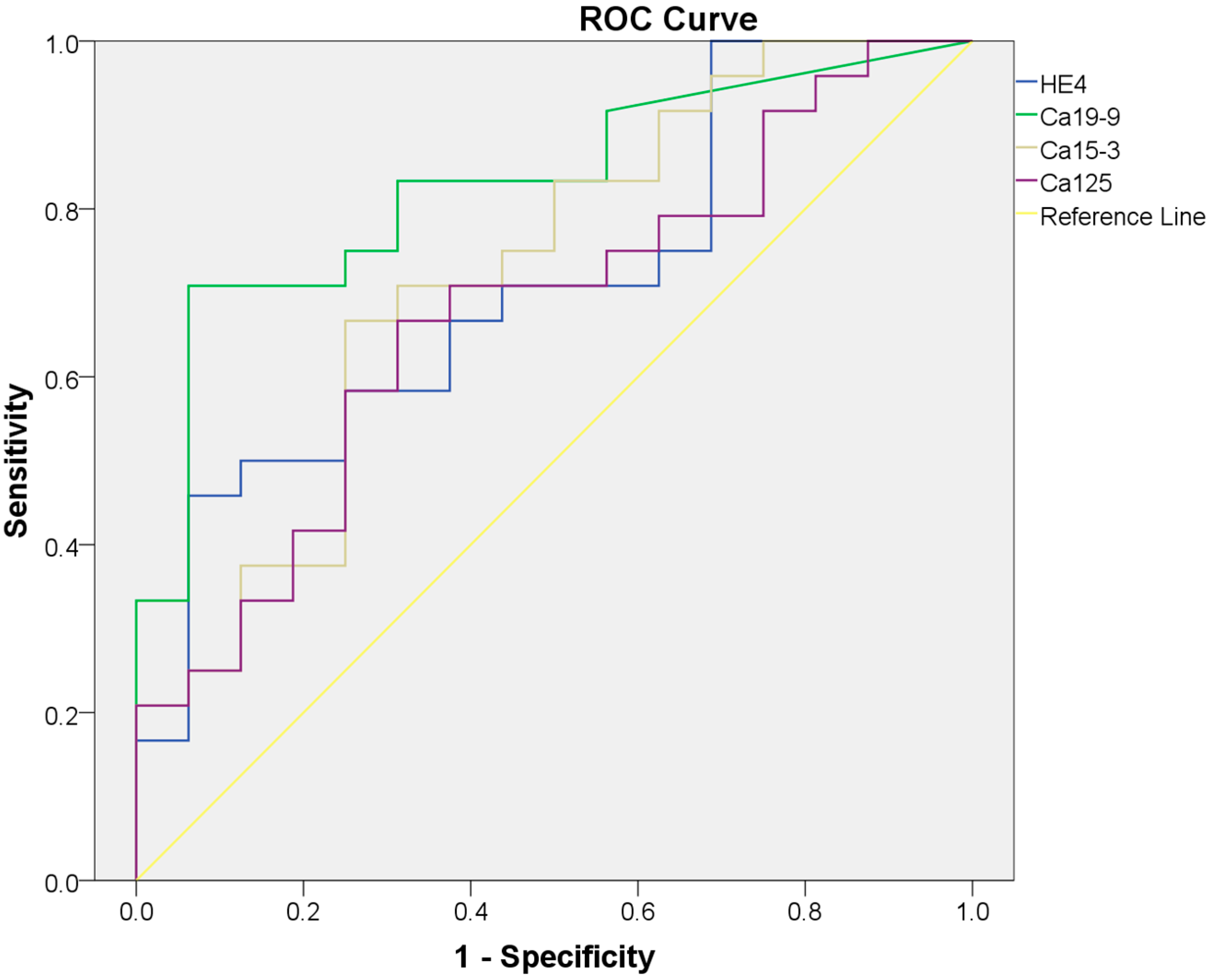 | CA19-9 | + | 17 | 1 | 70.83% | 93.75% | 80% |