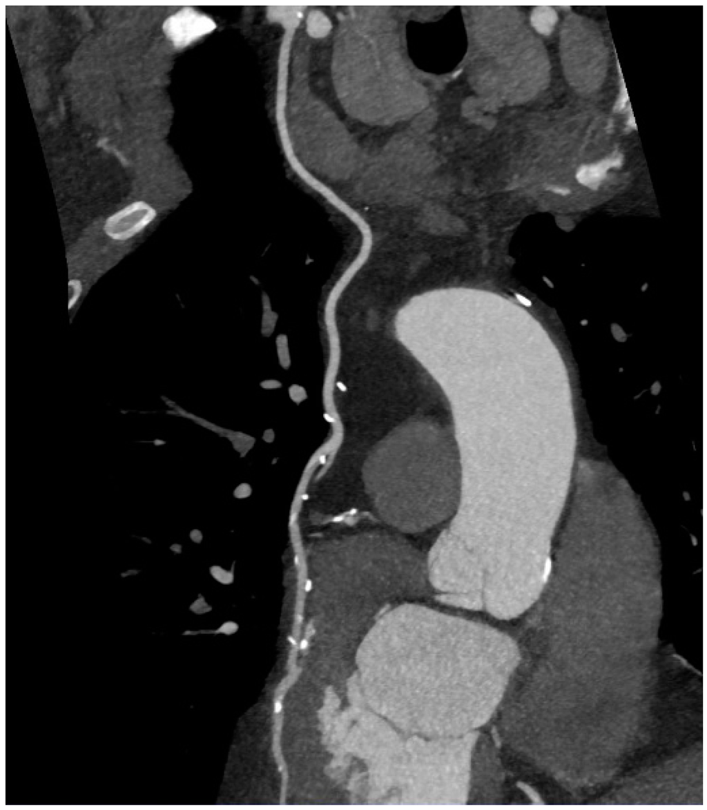 - Leipsic, J.; Abbara, S.; Achenbach, S.; Cury, R.; Earls, J.P.; Mancini, G.J.; Nieman, K.; Pontone, G.; Raff, G.L. SCCT guidelines for the interpretation and reporting of coronary CT angiography: A report of the Society of Cardiovascular Computed Tomography Guidelines Committee. J. Cardiovasc. Comput. Tomogr. 2014, 8, 342–358. [Google Scholar] [CrossRef] [PubMed]