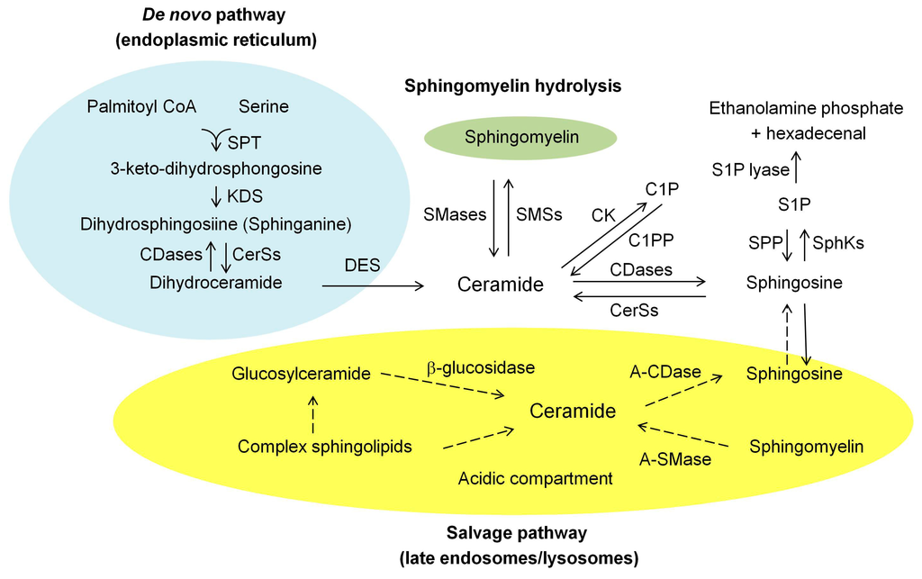 2. Ceramide Biosynthesis and Degrading Pathways in Mammalian Cells