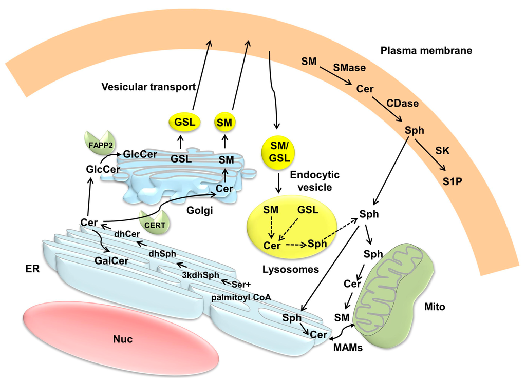 3. Compartmentalization of Ceramide Metabolism and Trafficking of Ceramide