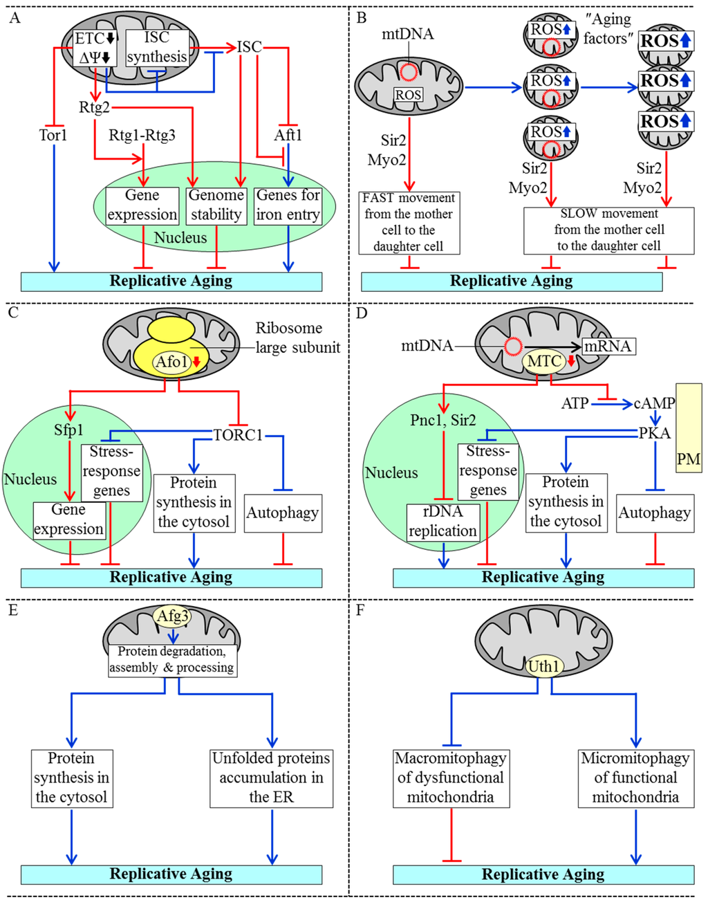 3.1. Mechanisms Underlying the Essential Role of Mitochondria in Yeast Replicative Aging