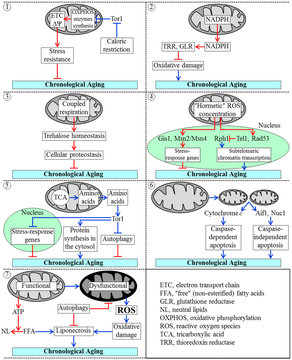 - Pan, Y. Mitochondria, reactive oxygen species, and chronological aging: A message from yeast. Exp. Gerontol. 2011, 46, 847–852. [Google Scholar] [CrossRef] [PubMed]
