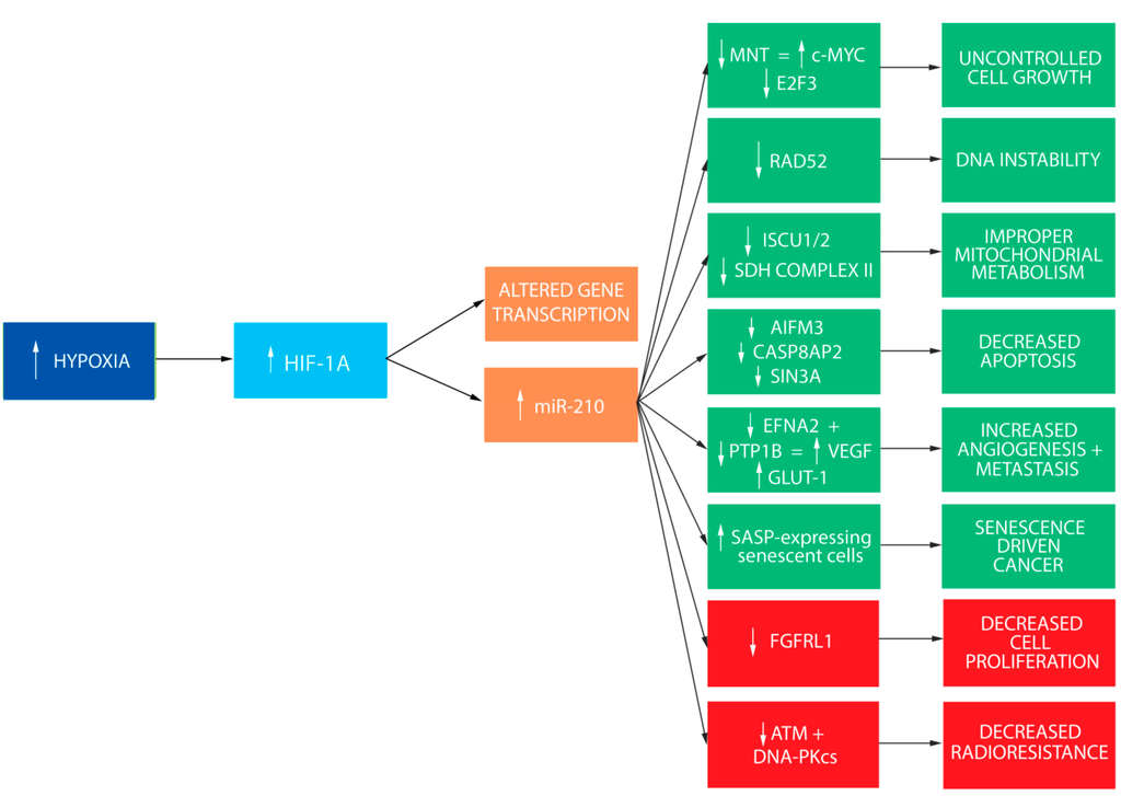- Corn, P.G. Hypoxic regulation of miR-210: Shrinking targets expand HIF-1’s influence. Cancer Biol. Ther. 2008, 7, 265–267. [Google Scholar] [CrossRef] [PubMed]