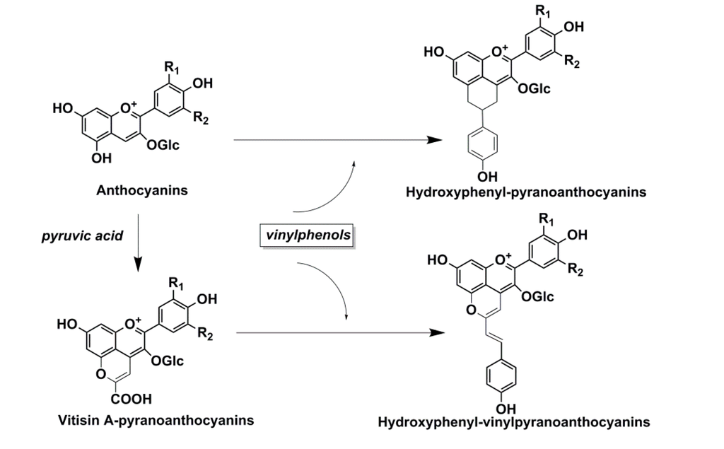 Formation of the anthocyanin-vinylphenol adducts [46].