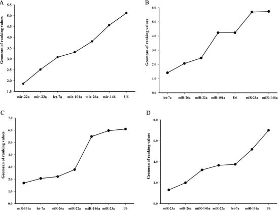 | Normfinder | let-7a | miR-22a | miR-26a | miR-101a | miR-146a | miR-23a | U6 |