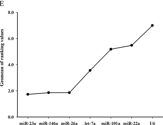 | geNorm | miR-146a/miR-26a | miR-23a | let-7a | miR-101a | miR-22a | U6 |