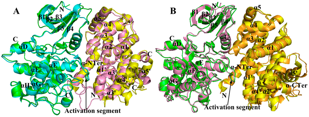 - Cox, S.; Radzio-Andzelm, E.; Taylor, S.S. Domain movements in protein kinases. Curr. Opin. Struct. Biol. 1994, 4, 893–901. [Google Scholar]