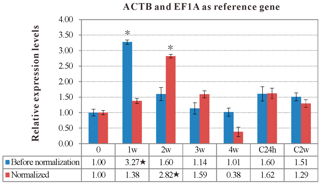 | 3 | ACTB (1.23) | EF1A (0.98) | ACTB (0.85) | EF1A (0.74) | ACTB (2.59) | |