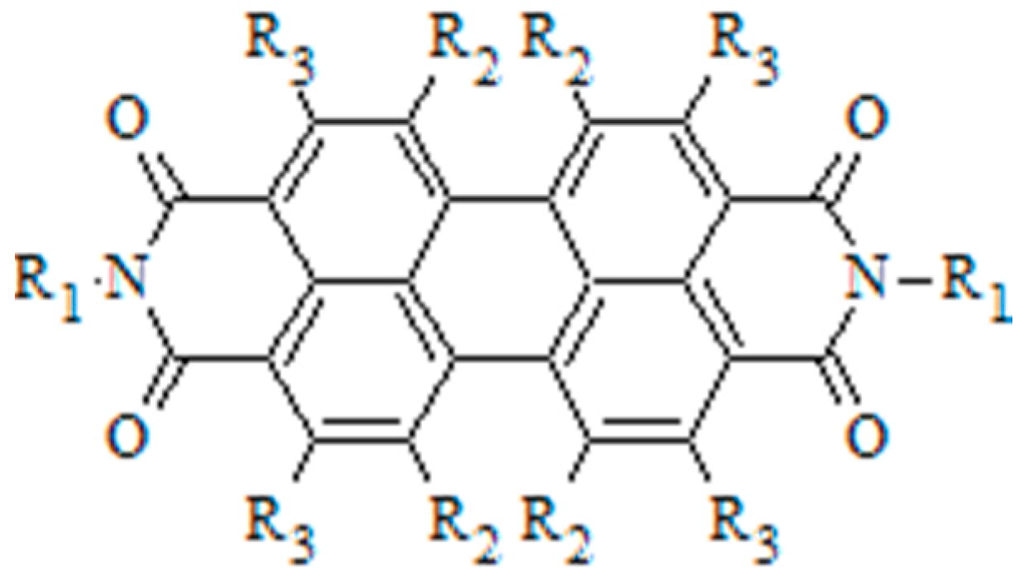 - Huang, C.; Barlow, S.; Marder, S.R. Perylene-3,4,9,10-tetracarboxylic acid diimides: Synthesis, physical properties, and use in organic electronics. J. Org. Chem. 2011, 76, 2386–2407. [Google Scholar] [CrossRef] [PubMed]