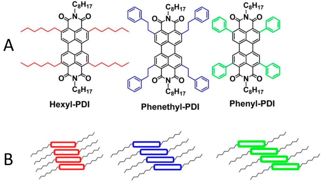 - Balakrishnan, K.; Datar, A.; Naddo, T.; Huang, J.; Oitker, R.; Yen, M.; Zhao, J.; Zang, L. Effect of side-chain substituents on self-assembly of perylene diimide molecules: Morphology control. J. Am. Chem. Soc. 2006, 128, 7390–7398. [Google Scholar] [CrossRef] [PubMed]