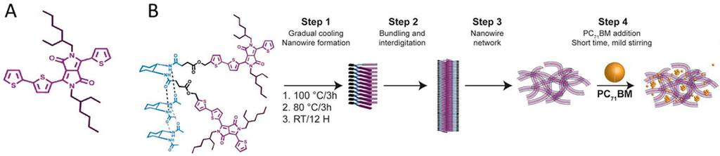 - Ruiz-Carretero, A.; Aytun, T.; Bruns, C.J.; Newcomb, C.J.; Tsai, W.-W.; Stupp, S.I. Stepwise self-assembly to improve solar cell morphology. J. Mater. Chem. A 2013, 1, 11674–11681. [Google Scholar] [CrossRef]