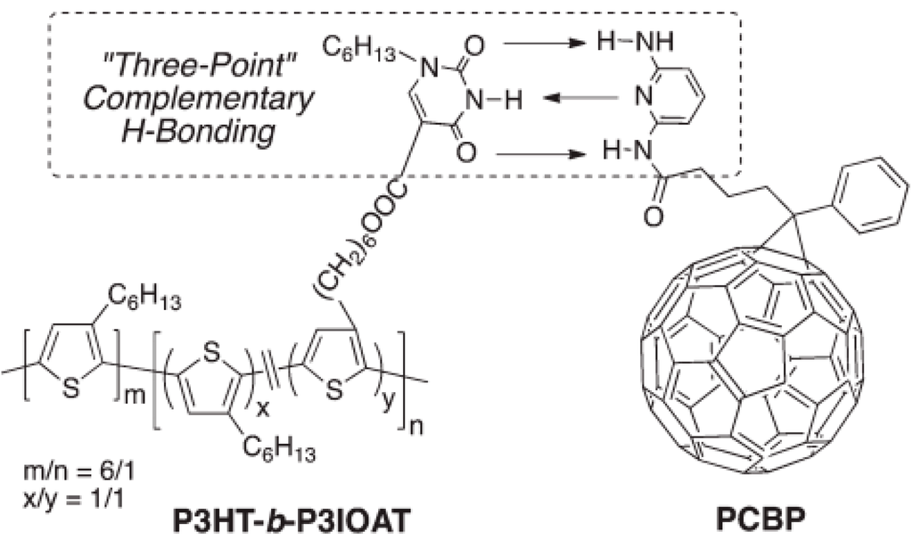 - Lin, Y.; Lim, J.A.; Wei, Q.; Stefan, C.B.; Briseno, A.L.; Watkins, J.J.; Mannsfeld, S.C.B.; Briseno, A.L.; Watkins, J.J. Cooperative assembly of hydrogen-bonded diblock copolythiophene/fullerene blends for photovoltaic devices with well-defined morphologies and enhanced stability. Chem. Mater. 2012, 24, 622–632. [Google Scholar] [CrossRef]