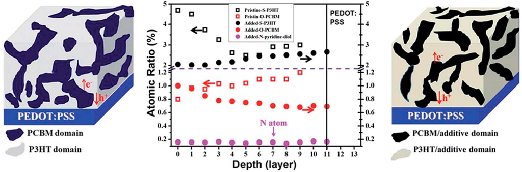- Xu, Z.; Chen, L.M.; Yang, G.; Huang, C.H.; Hou, J.; Wu, Y.; Li, G.; Hsu, C.S.; Yang, Y. Vertical phase separation in poly(3-hexylthiophene): Fullerene derivative blends and its advantage for inverted structure solar cells. Adv. Funct. Mater. 2009, 19, 1227–1234. [Google Scholar] [CrossRef]