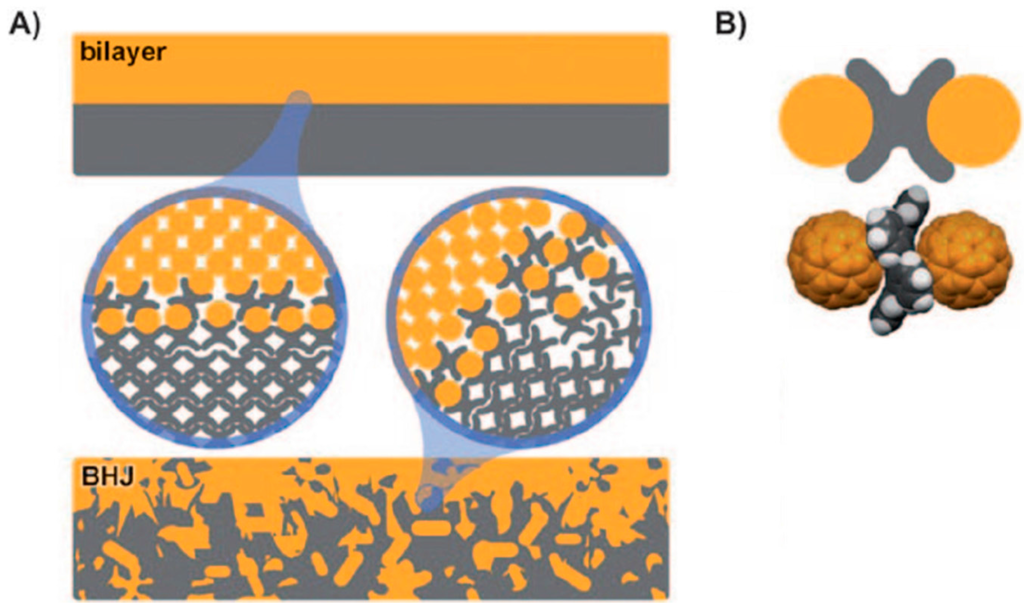 - Tremblay, N.J.; Gorodetsky, A.A.; Cox, M.P.; Schiros, T.; Kim, B.; Steiner, R.; Bullard, Z.; Sattler, A.; So, W.Y.; Itoh, Y.; et al. Photovoltaic universal joints: Ball-and-socket interfaces in molecular photovoltaic cells. Chem. Phys. Chem. 2010, 11, 799–803. [Google Scholar] [CrossRef] [PubMed]