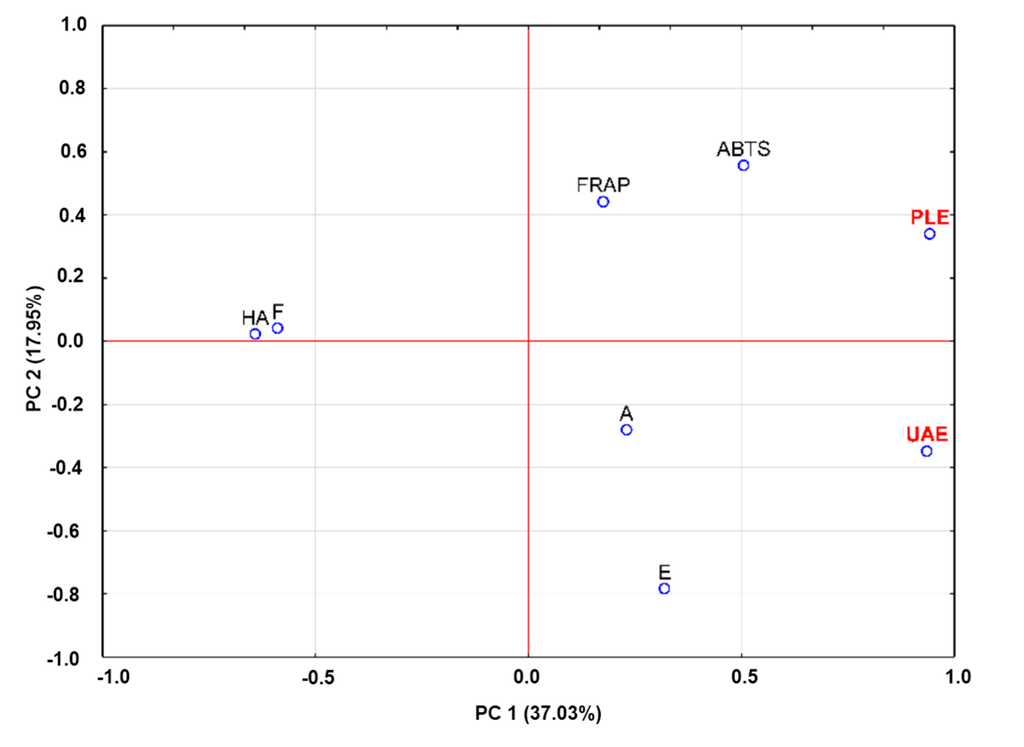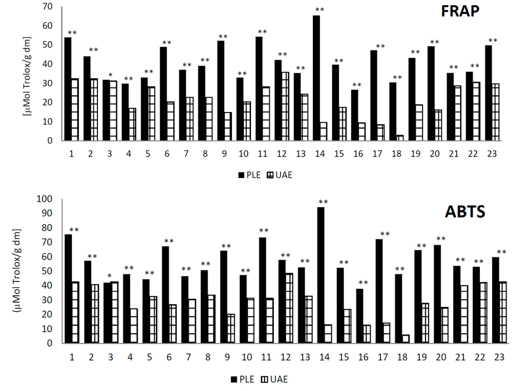 2.3. Analysis of the Antioxidant Activity Using Pressure Liquid Extraction and Ultrasonic-Assisted Extraction Methods