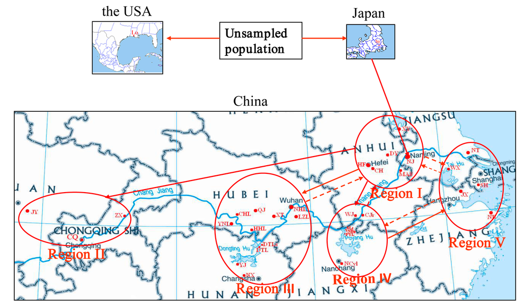 This study was a component of the Aquafish-ACRSP (Aquaculture Collaborative Research Support Program), supported by the US Agency for International Development (USAID). This study was also supported by the Fundamental Research Funds for the Central Universities (2012YB08), the Natural Science Foundation for Distinguished Young Scientists from the President of Anhui Academy of Agricultural Sciences (13B0506), and the National Natural Science Foundation of China (31001103). We gratefully acknowledge Prof. Peter Edwards for critical review of the manuscript. We thank Dr. Jian Gao and Dr. Dan Wang for kindly providing samples from Japan and the USA, and many friends who are not listed in detail here for helping collect samples and offering some technical assistance.