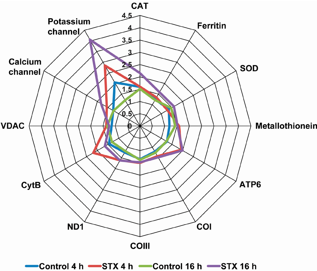- Núñez-Acuña, G.; Aballay, A.E.; Hégaret, H.; Astuya, A.P.; Gallardo-Escárate, C. Transcriptional responses of Mytilus chilensis exposed in vivo to saxitoxin (STX). J. Molluscan Stud. 2013, 79, 323–331. [Google Scholar] [CrossRef]